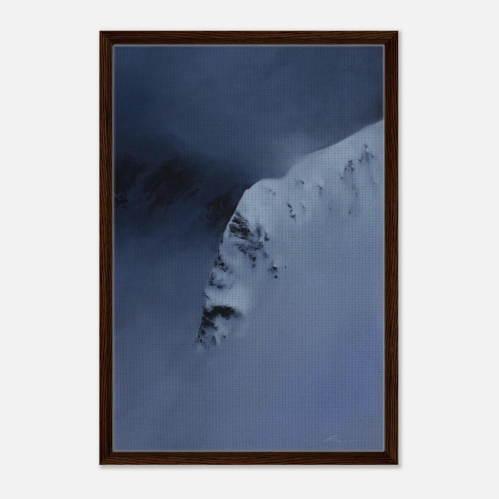 This beauty will top the list on my 2D artistic endeavors for a while. It's got the moody blues and winter hues. It is my first attempt at realism in my painting practice. This just spewed out of my during my baby's nap time one day, It was a connection!! It look a lot of finessing to blend and smooth it out. The colours of winter grab me like nothing else. Creating something in this dark colour was new for me and it feels cold with depth. Just looking at this piece makes you want to ski a line on this face.