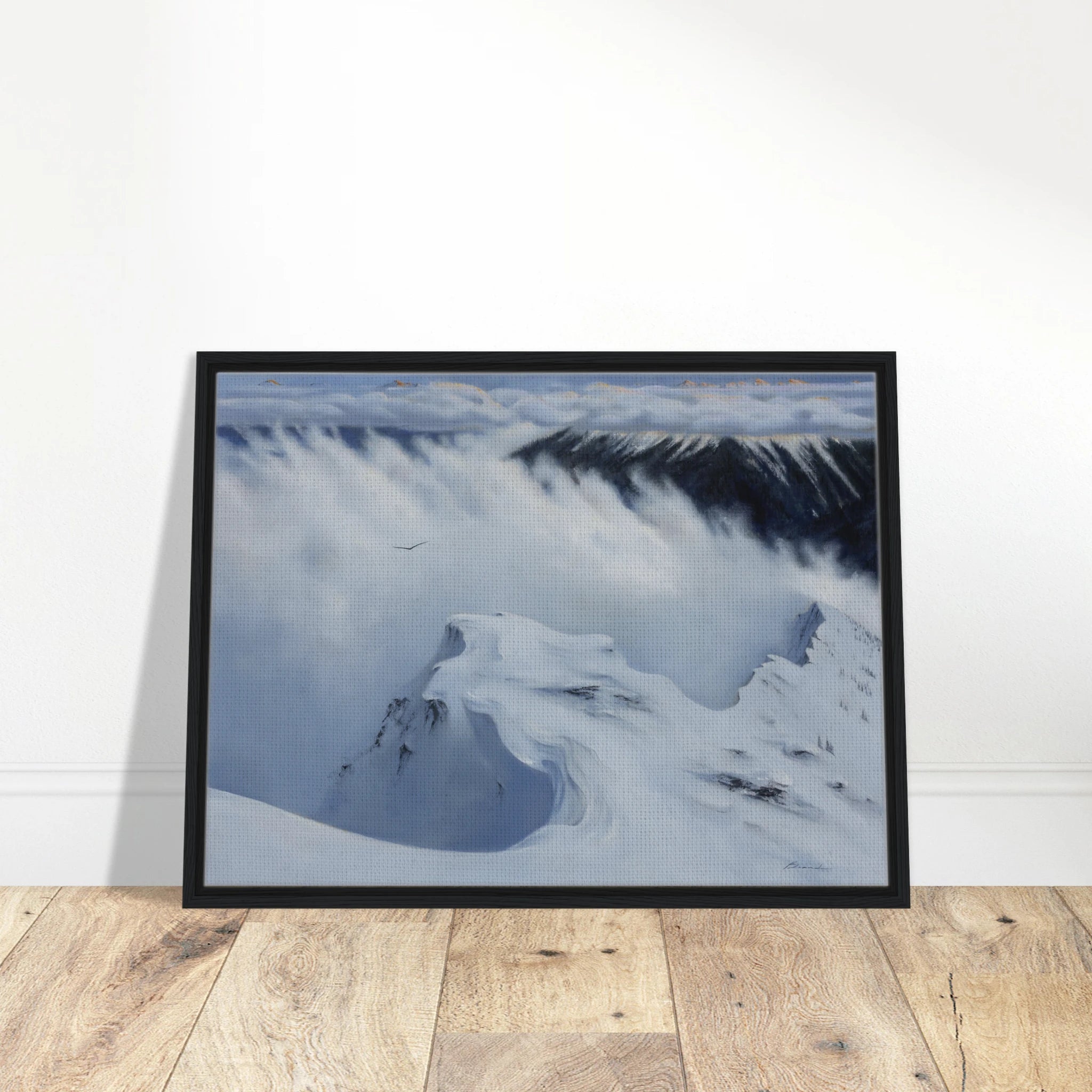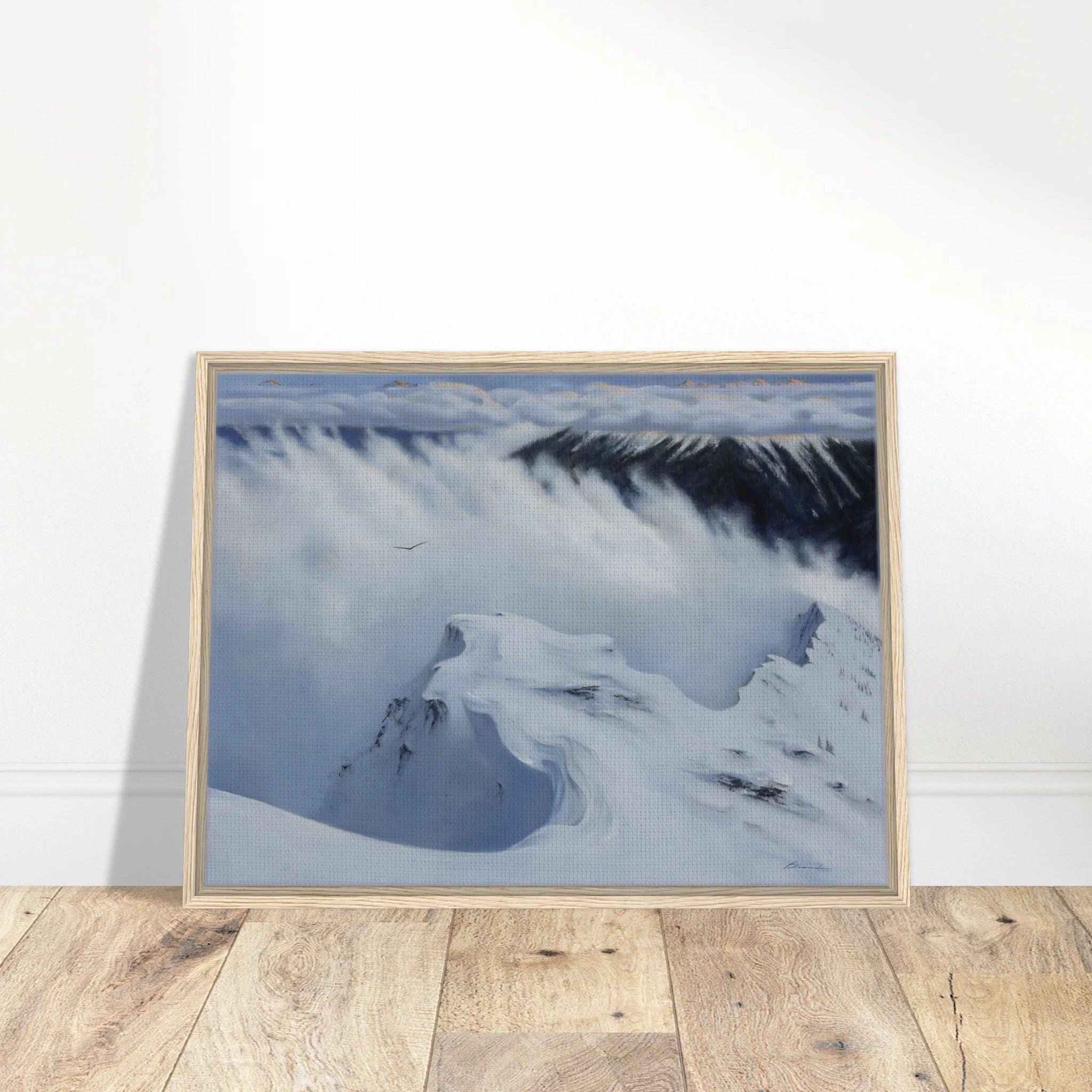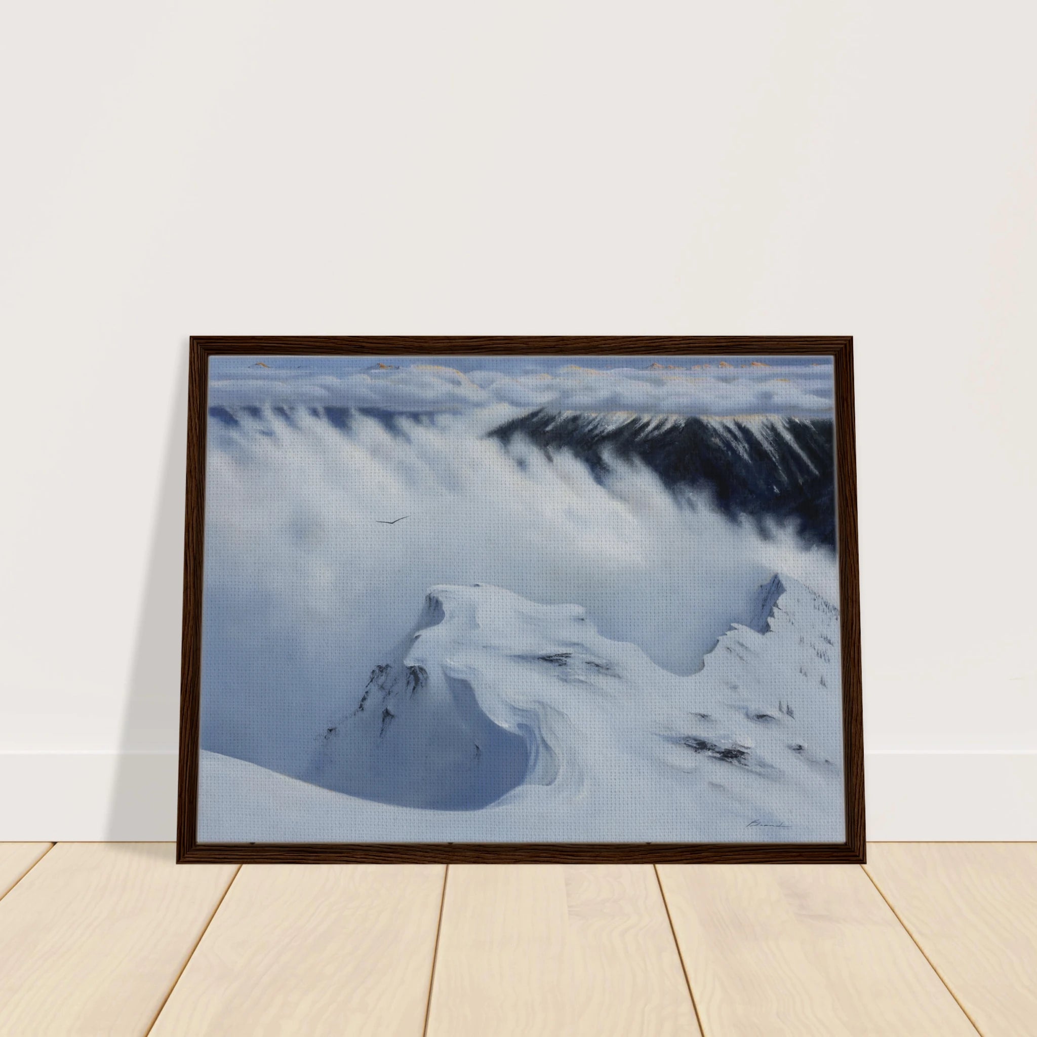 I worked on this in November 2025, acrylic. It was a challenge for me to work with the wind scoured snow and getting the colors faded correctly. At the last minute I decided to add some alpine glow to the tips of the peaks as well as a gold brushing on the clouds and mist. It made it sing.